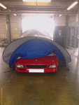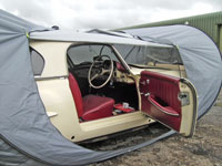 It's UV 50+ rating will save your interior from the harmful effects of the sun. The TOUCHLESS CAR COVER can be used both indoors and outdoors, though best to avoid exposed or windy locations. It pops up in seconds with integral marine-grade fibreglass ribs.